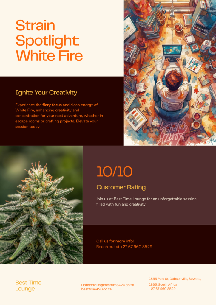 Book your chill session: [https://besttime420.co.za/] 📍 [1853 Pule St, Dobsonville, Soweto, 1863, South Africa] #BestTimeLounge #StrainSpotlight #Soweto #Dobsonville #Indica #ChillVibes #Sativa #CannabisCommunity #SowetoNights #BlueFire #Hybrid #BoardGames #Painting #BalancedVibes